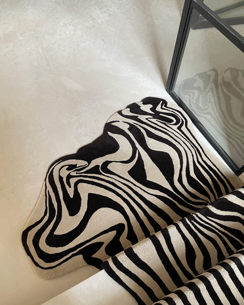 Tufted to size and custom-made to perfection, this monochrome Melting runner by Henry Holland Studio beautifully complements the sculptural concrete staircase and walls. Designed with precision, it’s proof that a rug can truly transform a space.