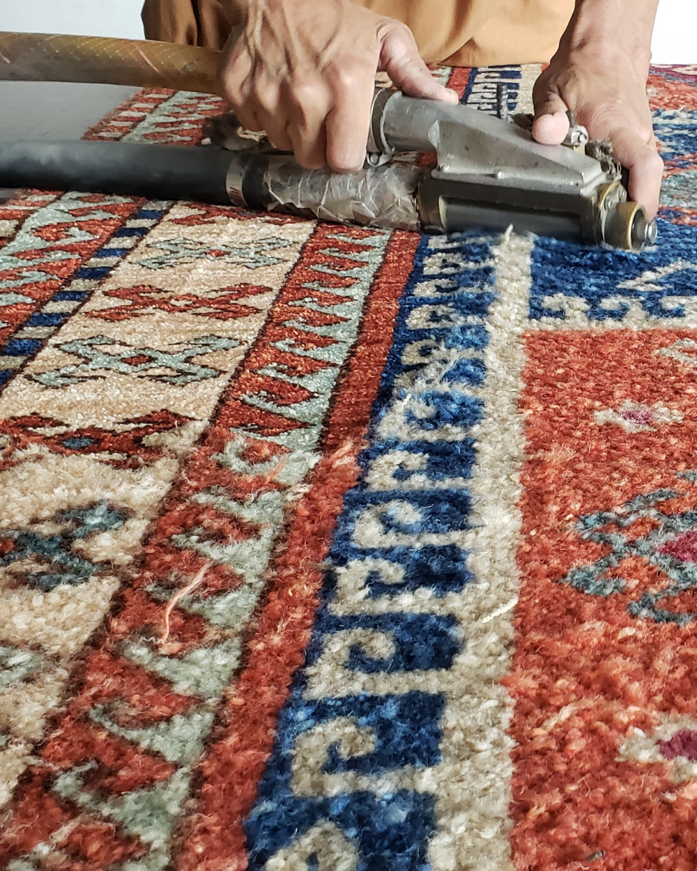 Shaving the Ghazni wool, revealing a clear and intricate design.