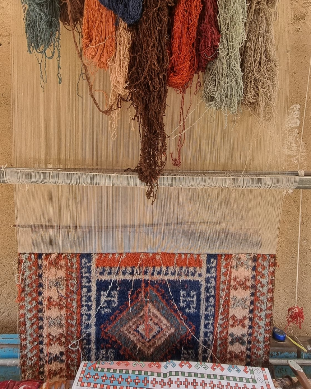 The design being hand knotted on a loom using local Ghazni wool.