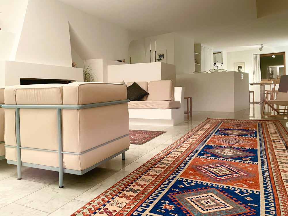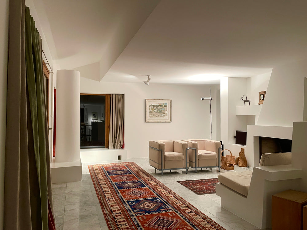 In the mountainous landscapes of the Swiss Alps stands an idyllic home designed by Swiss Architect Rudolf Olgiati, and within it lies a very special rug. This was in fact the last house Olgaiti built which is in his hometown of Flims. His career was nothing short of extraordinary, spanning several decades and redefining modern residential design.