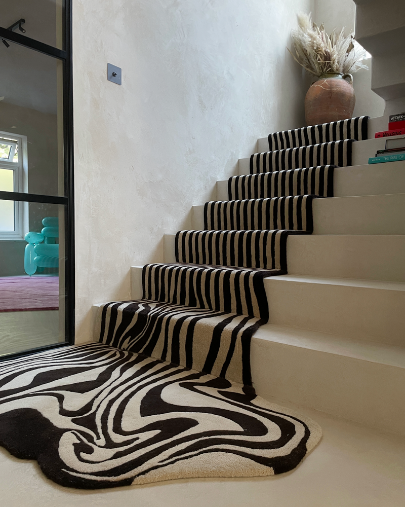 We installed this mega melting rug for pop singer Anne-Marie, the rug, designed by henry holland studio was customised to the space and expertly installed by the team.