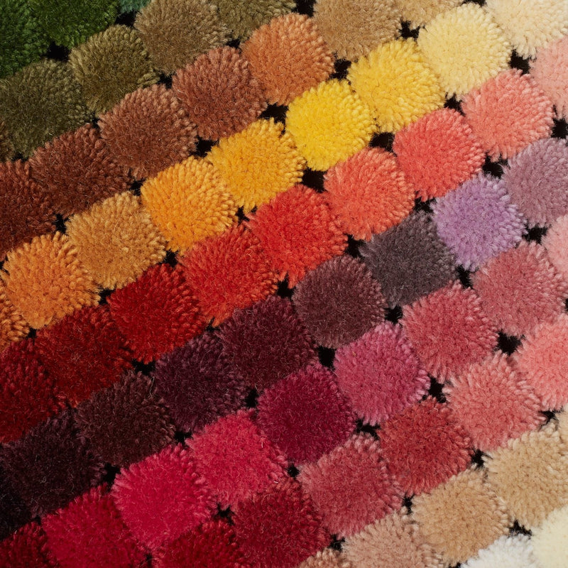 Our trade pom boxes come with a selection of wool and viscose yarns in 150 shades, making it oh so convenient to colour both custom and bespoke rugs.