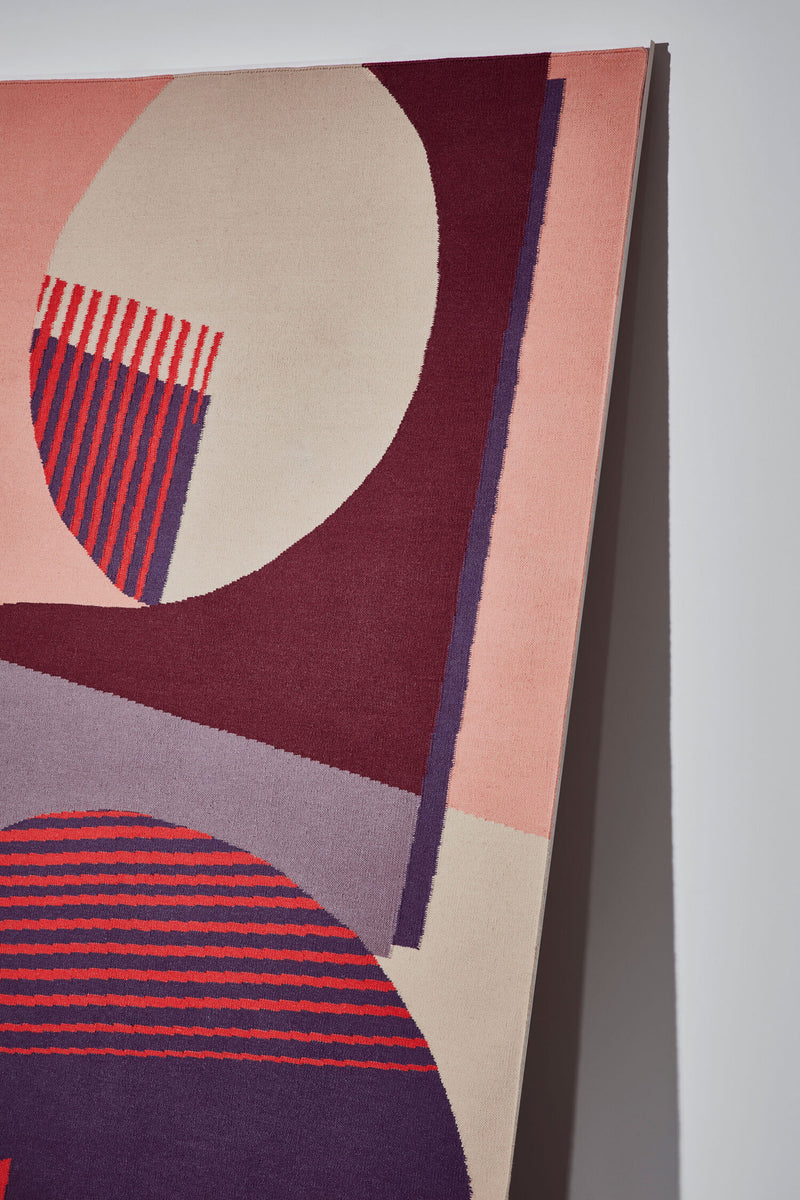 The tactility of Diane’s paper screen printing reveals layers of lines, dots and hand-cut stencils. To encompass these textures Diane designed rugs in three different constructions, exploring the similarities and differences between the printing and weaving processes.