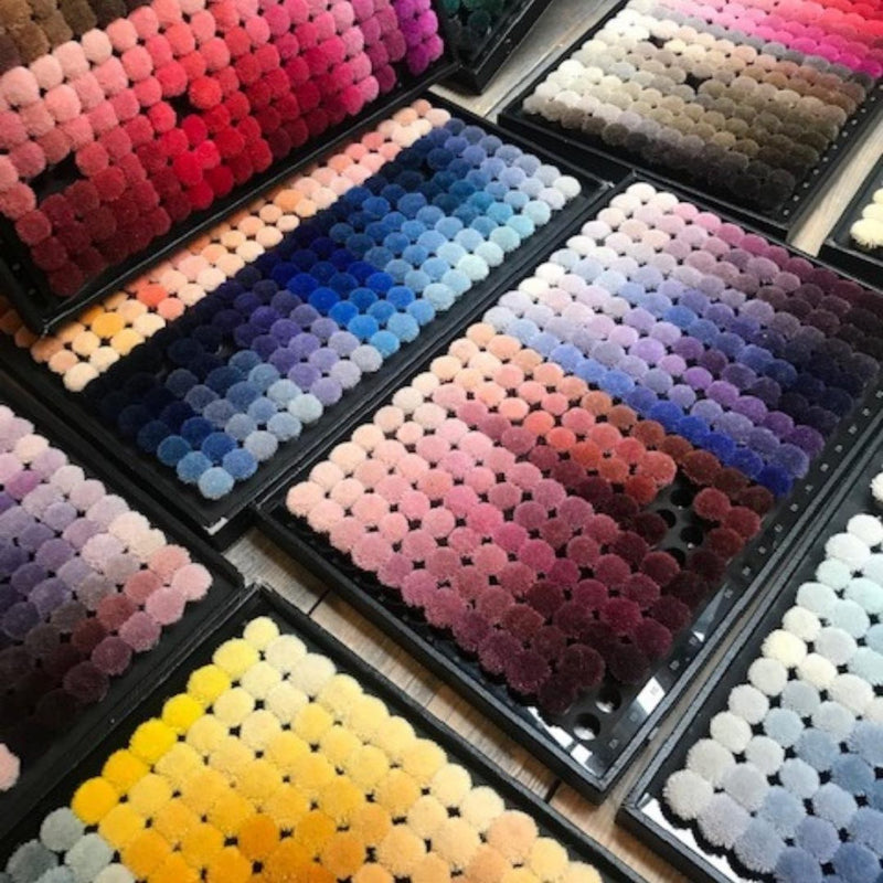 Unlock your creativity with colour, with more than 3000 wool poms to choose from, you’ll have the ability to create the perfect palette and match the colours of your bespoke rug to your interior setting. And if you can’t decide, we can colour match too! You can also add touches of texture through rug finishing techniques such as hand carving, pile heights, weaving techniques and many different yarn materials.