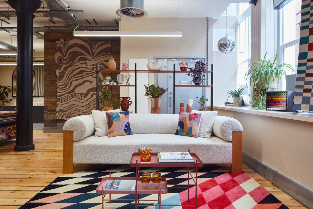 We big up creative thinkers, designers, makers and artists to share their ideas, beliefs and passions through the art of rug making. We celebrate the global rug making craft and explore collaborations that ‘give back’ to our community, such as our partnerships with theCrafts CouncilandChoose Love. We also offer free showroom space to local, independent designers and makers.