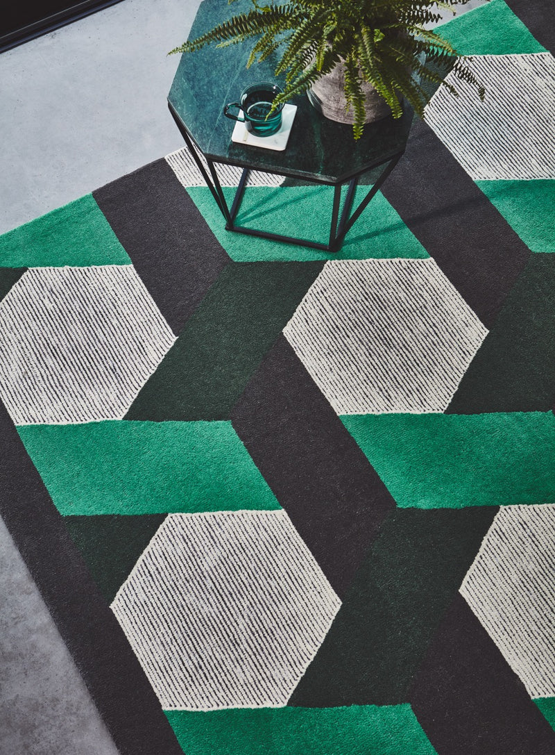 Cassian brings a striking graphic quality to any scheme. The hand-tufted, cut-and-loop technique adds textural dimension to the tessellating geometric pattern