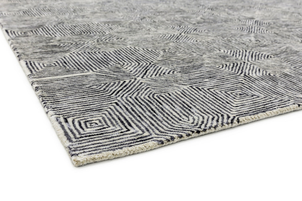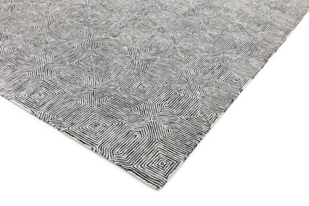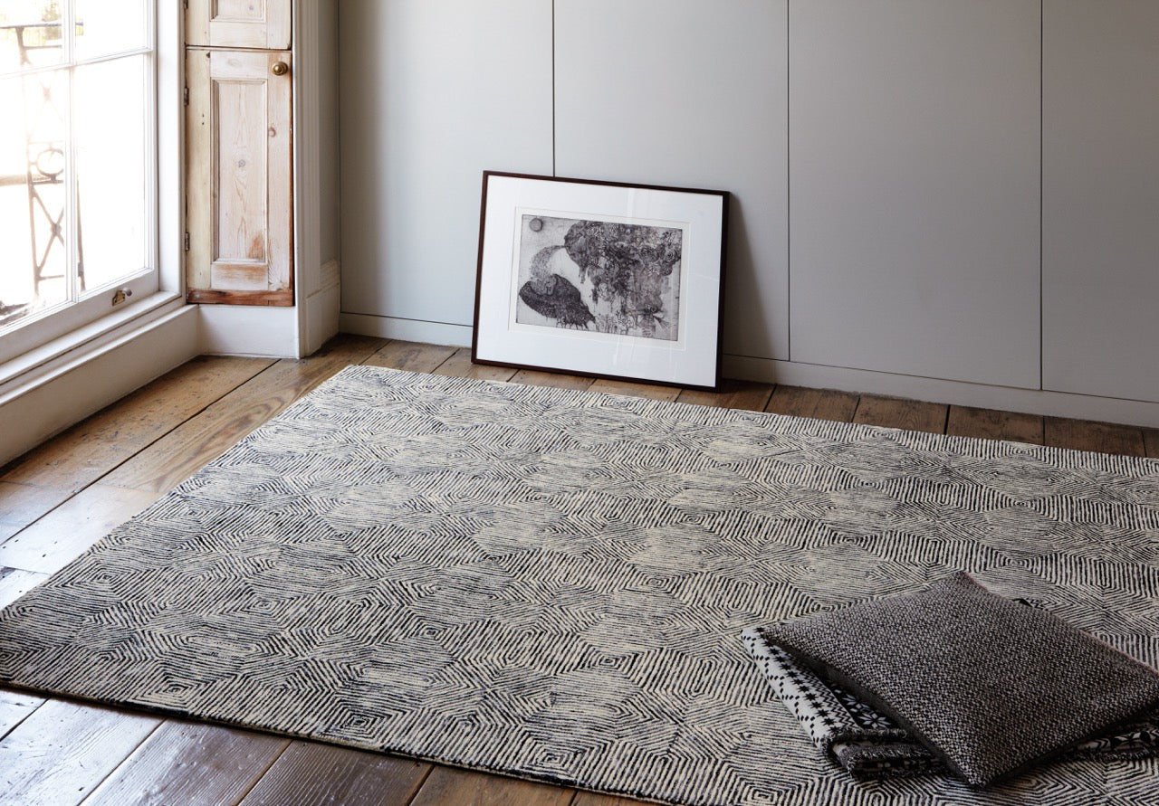 Chalkfarm in Black and White brings a striking graphic quality to any scheme. The hand-tufted, cut-and-loop technique adds textural dimension to the tessellating geometric pattern.