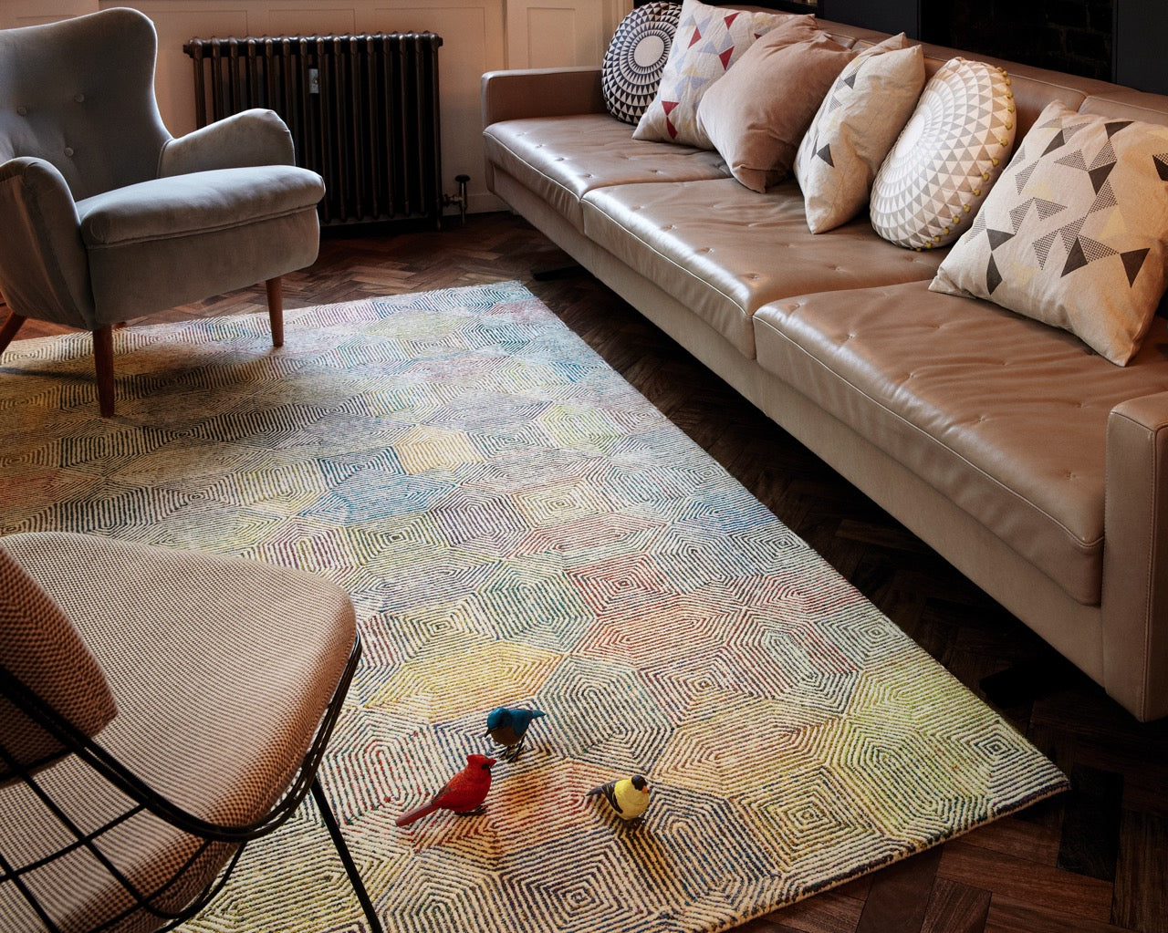 Chalkfarm in Cream and Multi, a visually stimulating rug with an elegant kaleidoscope design
