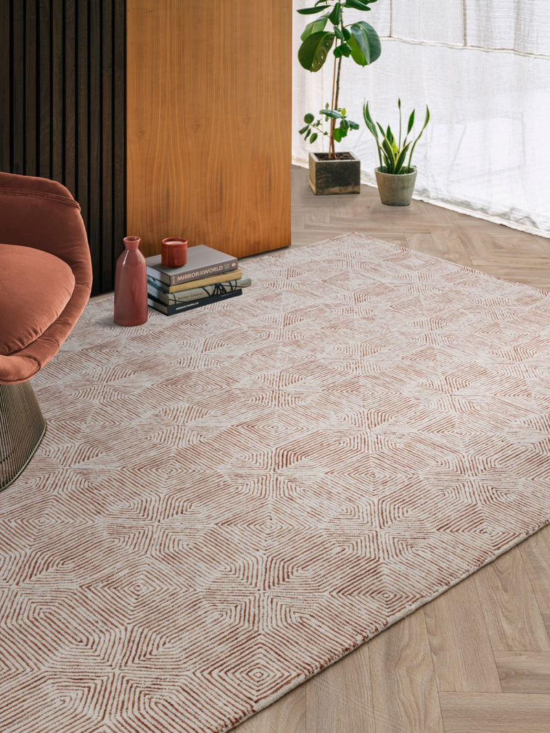 Chalkfarm in Terracotta, a visually stimulating rug with an elegant kaleidoscope design.