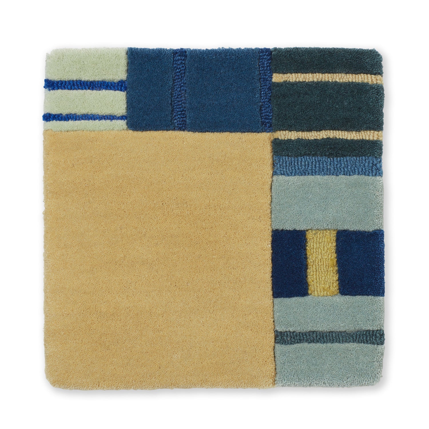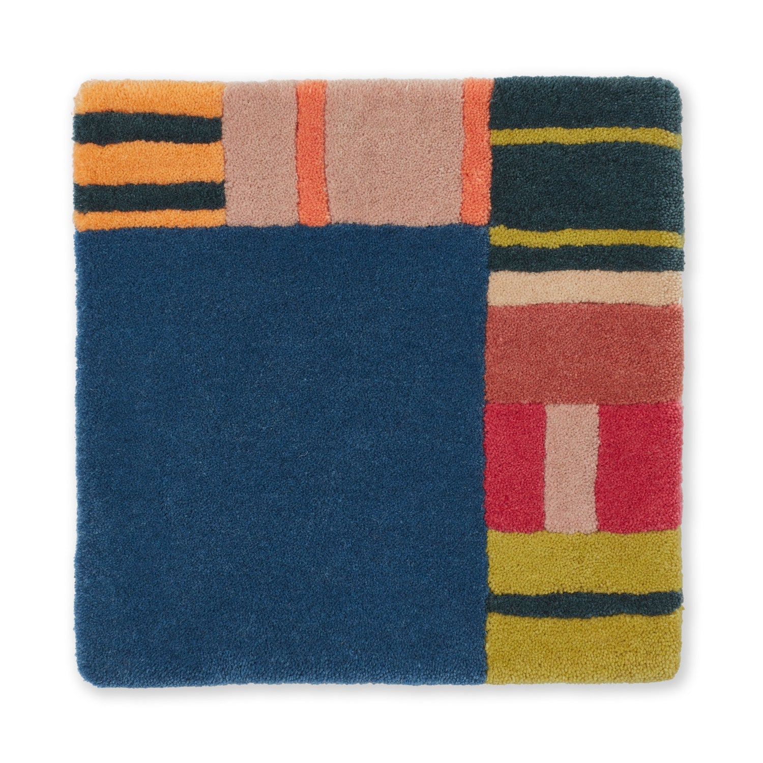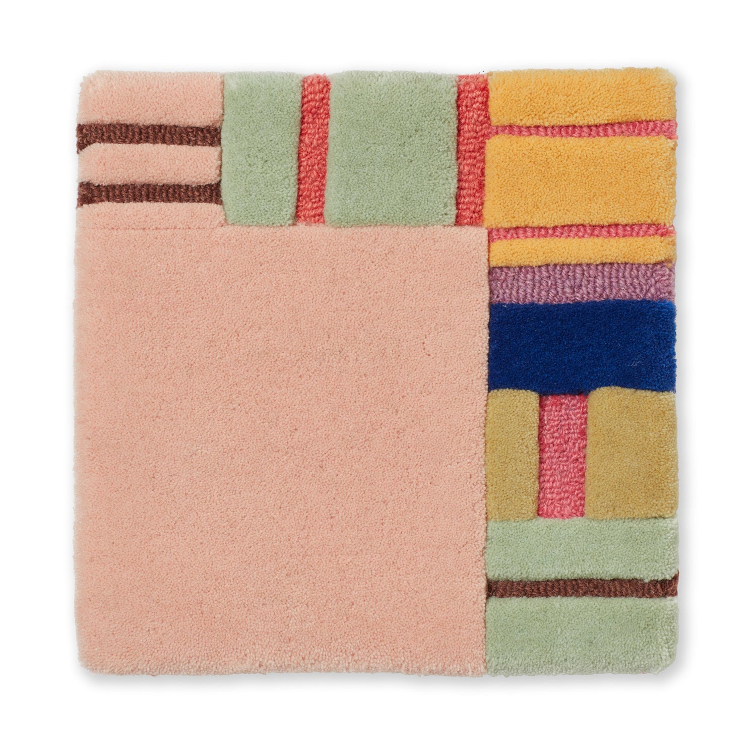 These cityscape influences have been translated into a series of colourways that recontextualise the unpolished inner city aesthetic. Gradient painterly textures contrast with linear bordered lines to give the tufted rugs depth whilst clean asymmetrical lines reveal an unconventional, flatwoven design.