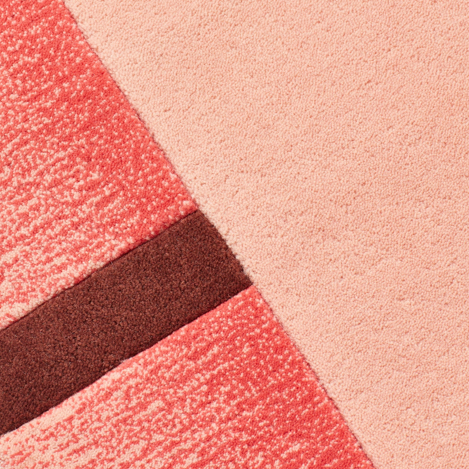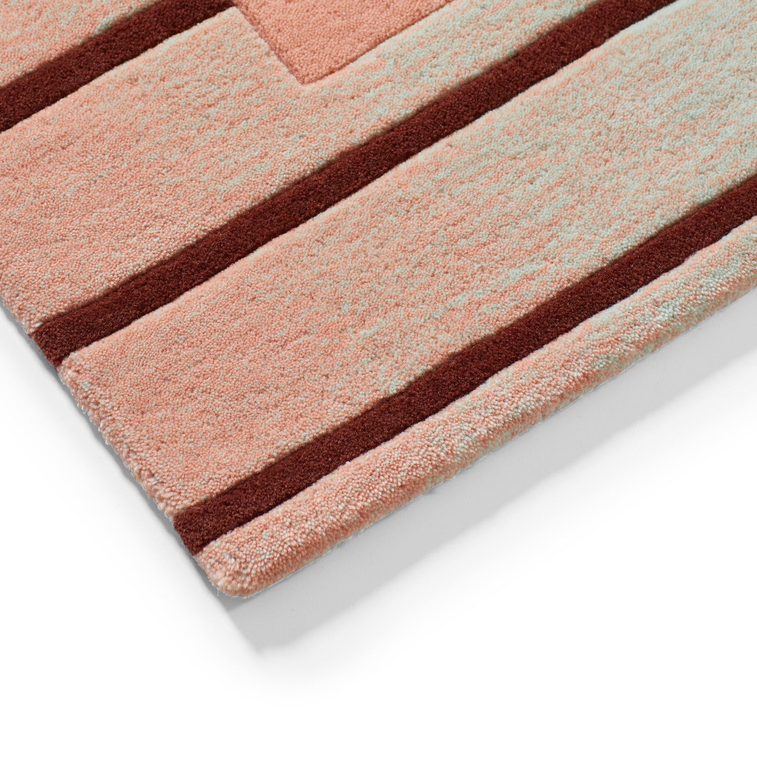 These cityscape influences have been translated into a series of colourways that recontextualise the unpolished inner city aesthetic. Gradient painterly textures contrast with linear bordered lines to give the tufted rugs depth whilst clean asymmetrical lines reveal an unconventional, flatwoven design.