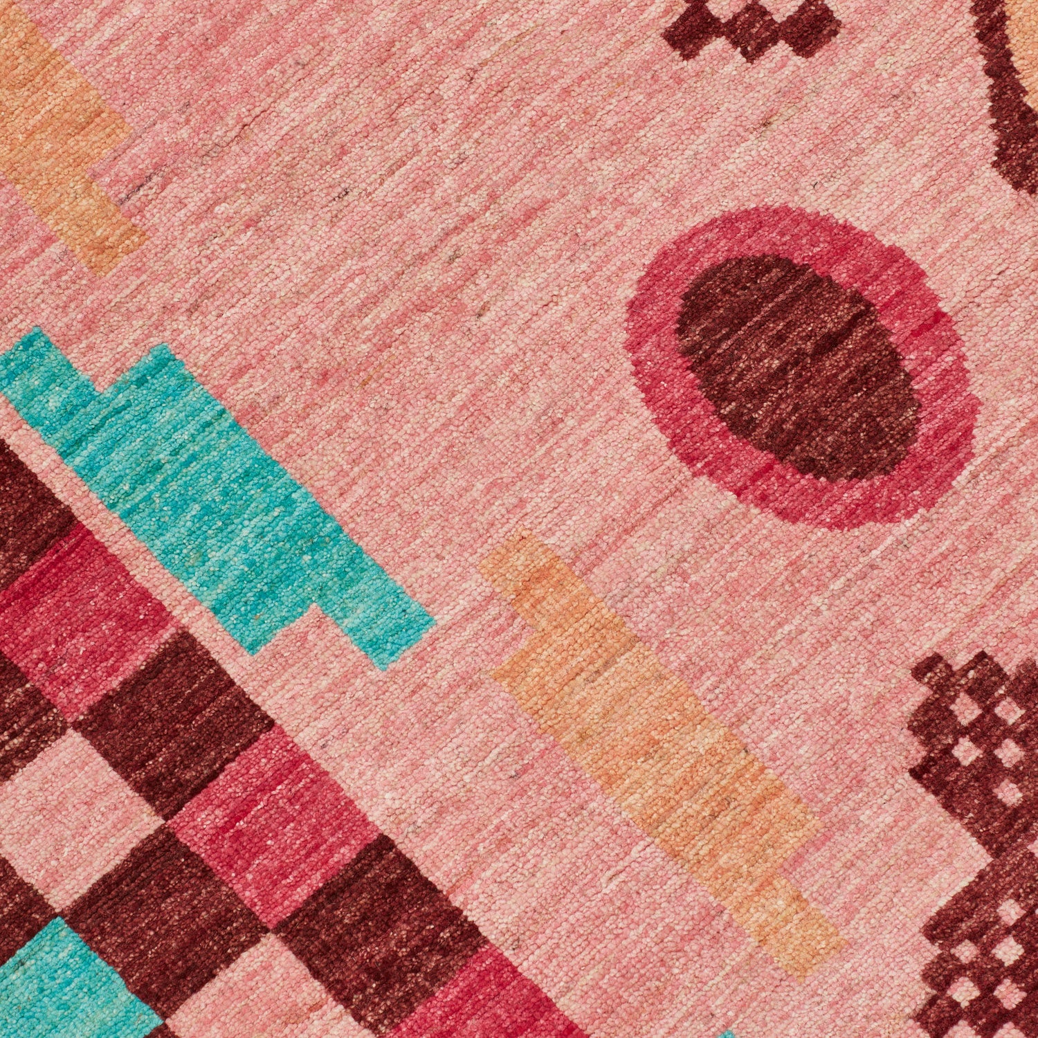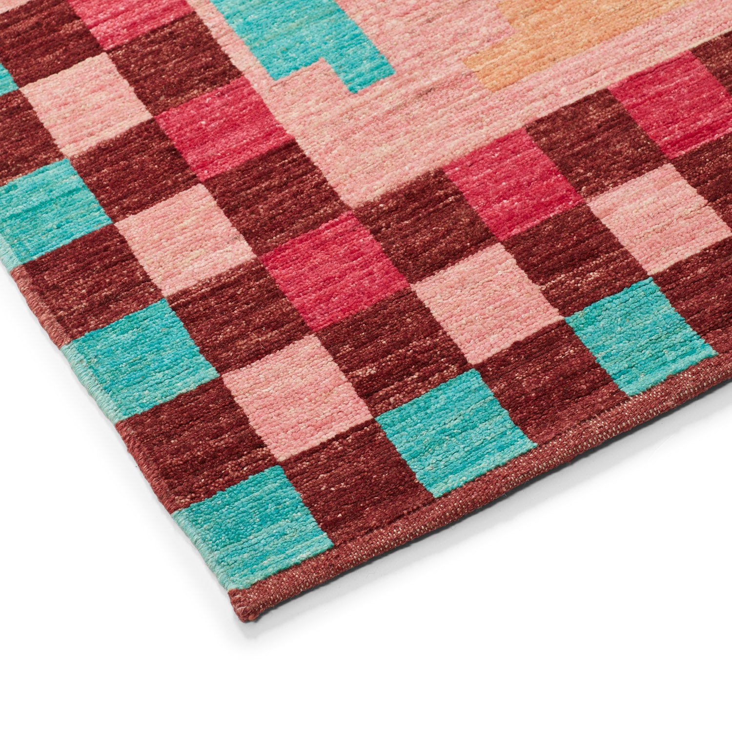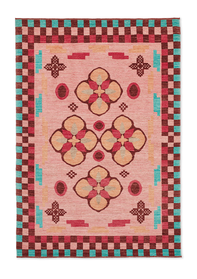 Surface designer Gill Thorpe has designed a series of contemporary, vintage-style rugs inspired by traditional motifs but brought into a modern context with vibrant colour combinations. Each rug is made using traditional hand-knot techniques and handcrafted by weavers based in Afghanistan. Woven with high-quality Ghazni wool, a regional wool known for its curled texture, the rugs feature a grainy effect when dyed, adding a distinct character to the weave.