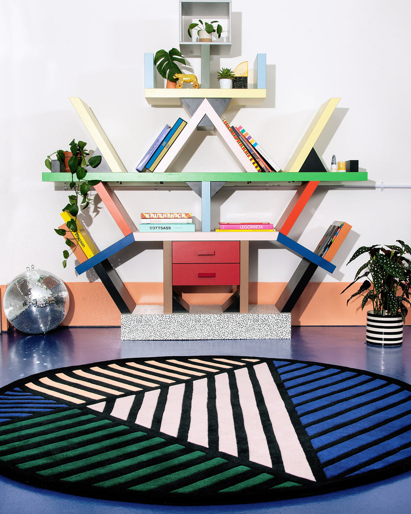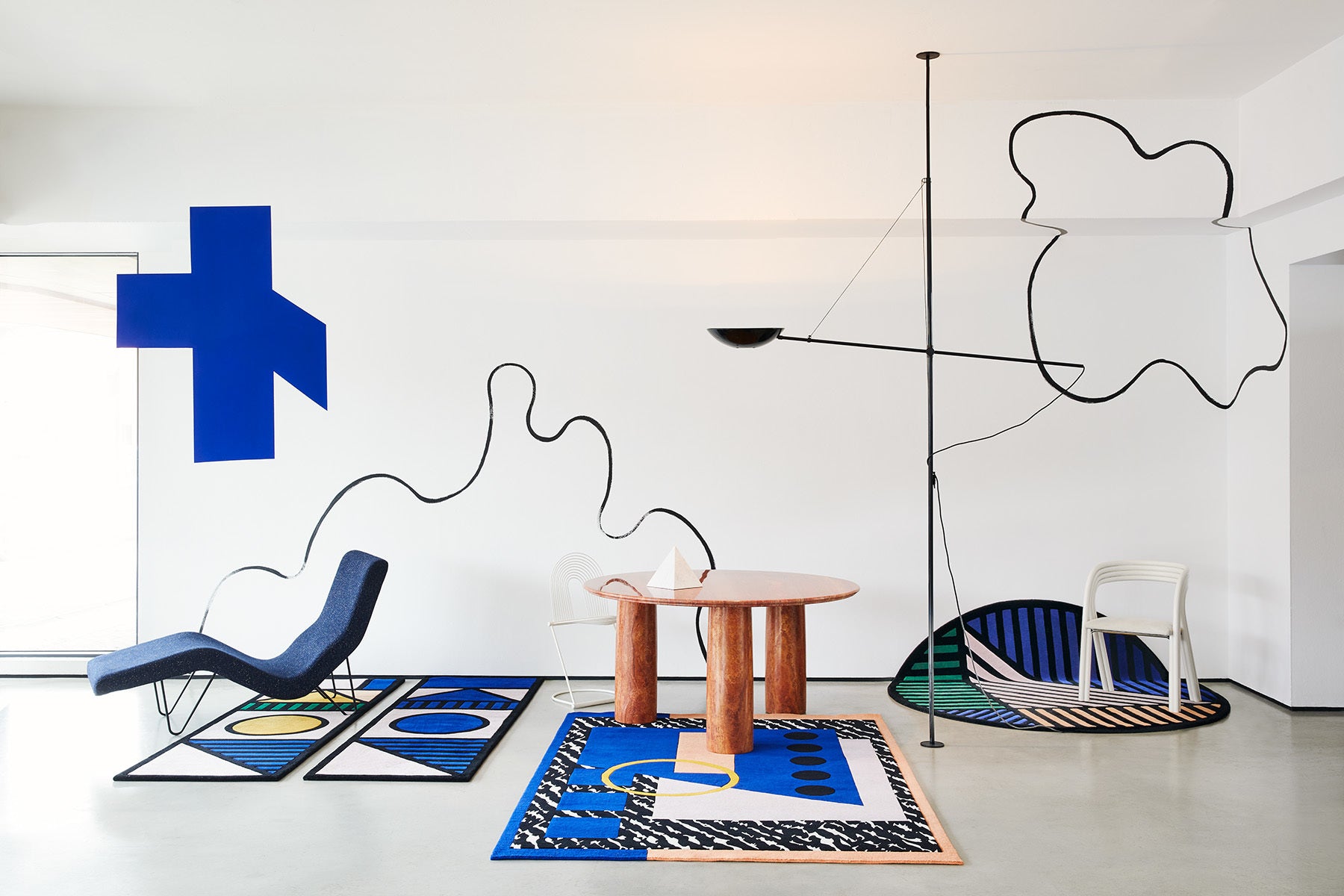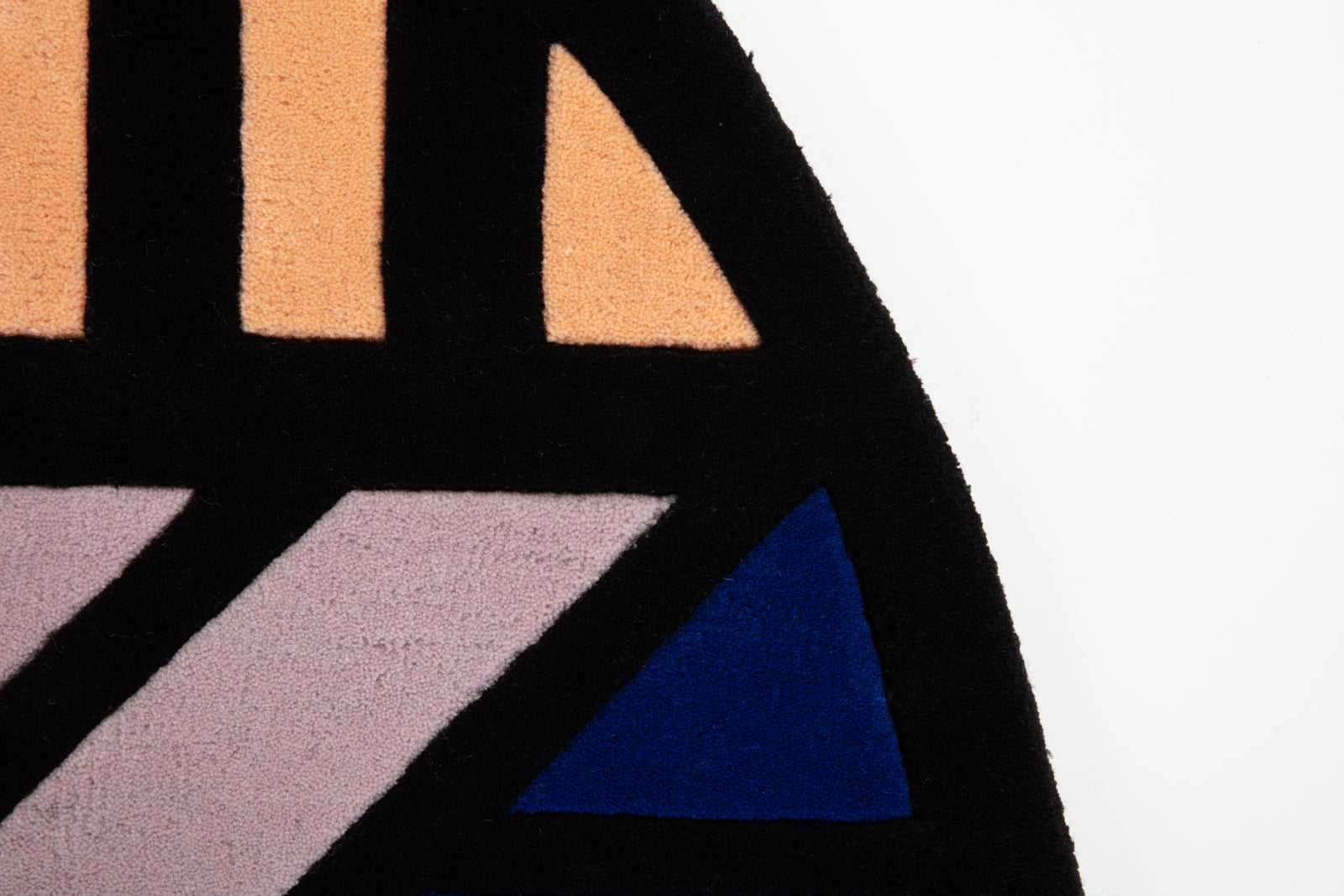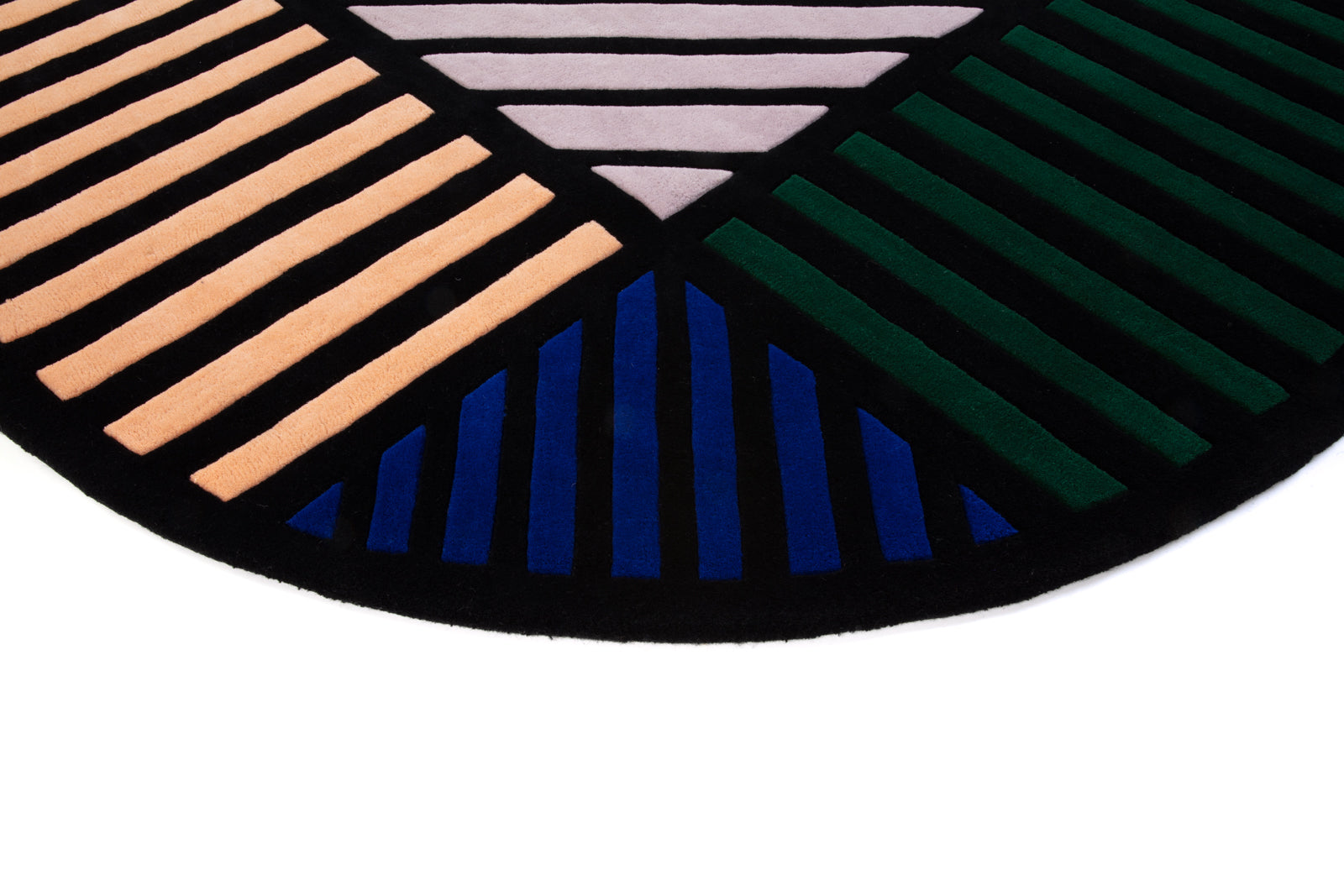 Camille Walala is famed for using courageous graphic shapes and primary colour to bring a pop feel to tribal inspired designs. In Ecliptic, Camille has brought a new dimension to her rugs for FLOOR_STORY, using a hand-tufted circle to frame a linear design in a colour palette rooted in sunshine yellow contrasting with deep blue and green.