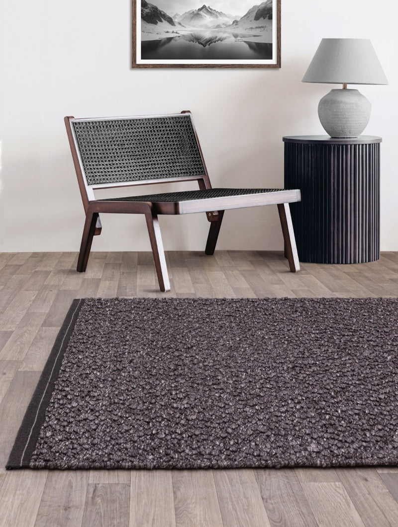 Elowen Charcoal, a rug that combines chunky boucle texture with a contemporary border.