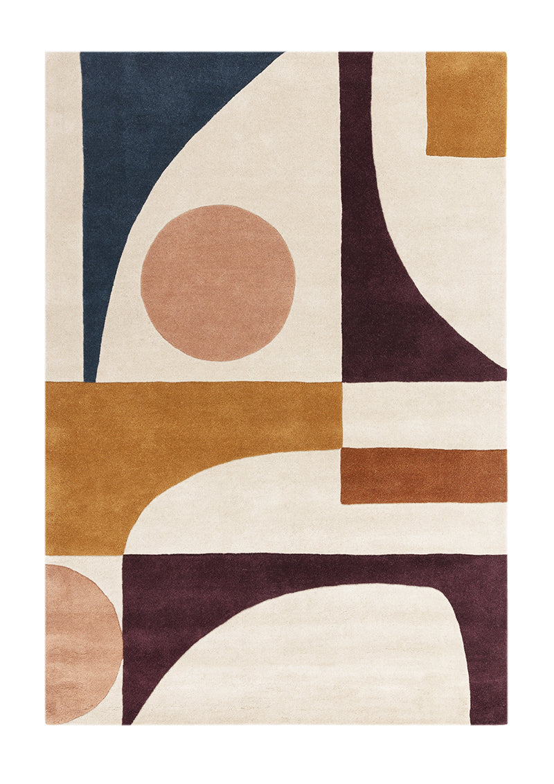 Frank's fusion of earthy and neutral color palettes brings a lively, graphic pattern that creates a dynamic focal point.