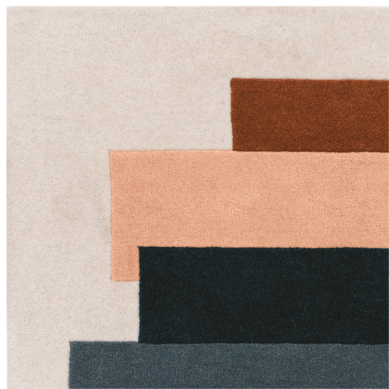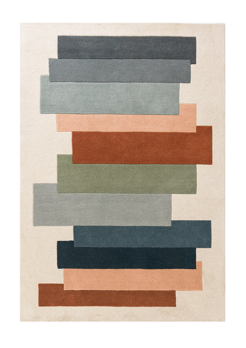Frank's fusion of earthy and neutral color palettes brings a lively, graphic pattern that creates a dynamic focal point.