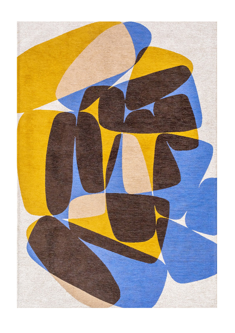 Gallery Stones celebrates softness and fluidity, drawing inspiration from time-worn pebbles and the delicate beauty of soap bubbles. Its design features overlapping, translucent forms that create a subtle interplay of depth and transparency. The harmonious color palette ranges from vibrant compositions to gentle monochromatic tones, enveloping spaces in a warm, contemporary ambiance.