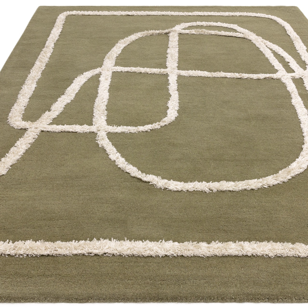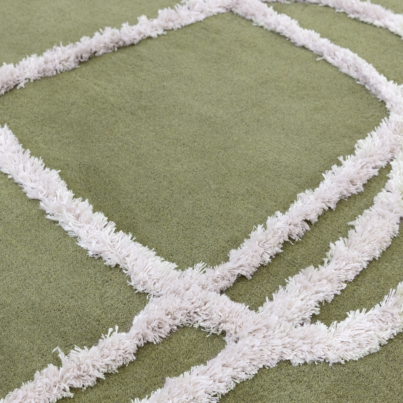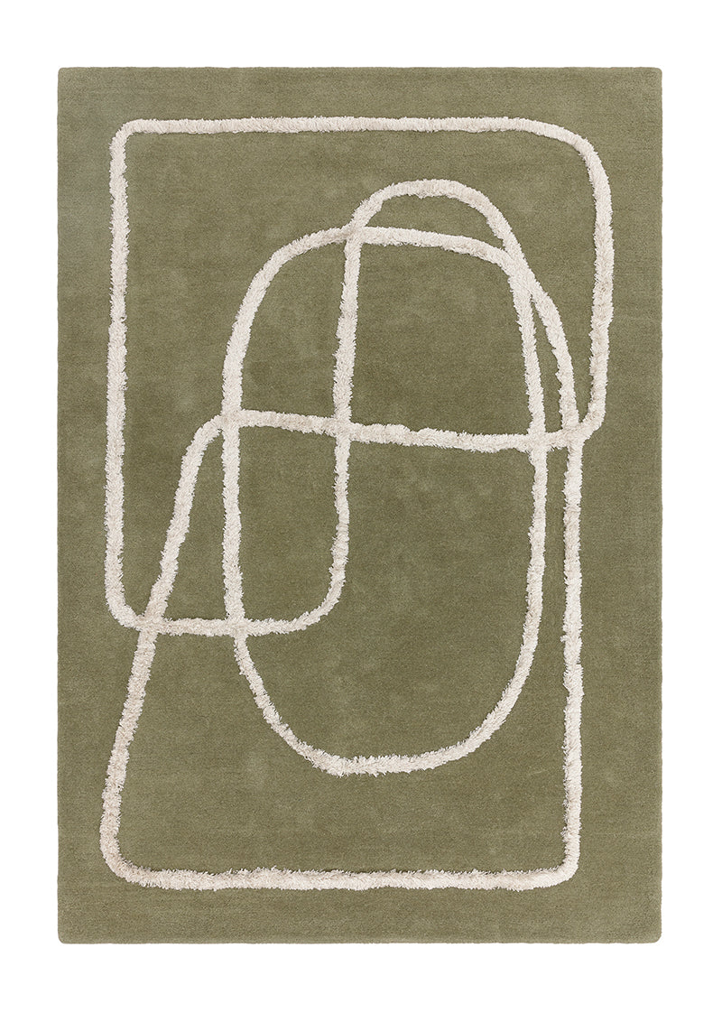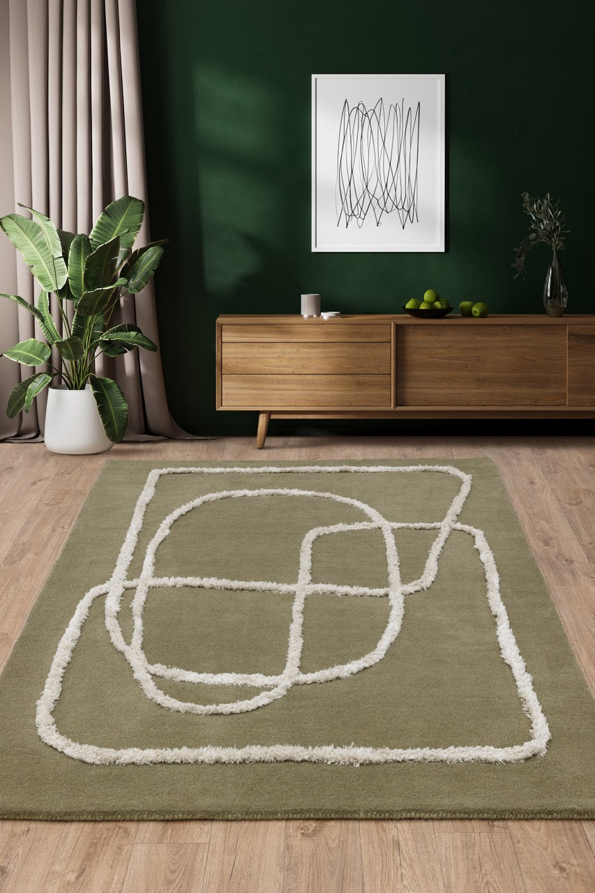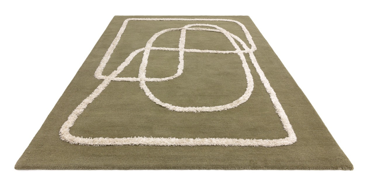 Ignatius features a contemporary abstract pattern, reminiscent of Nordic style, with raised viscose accents expertly tufted in an abstract line.
