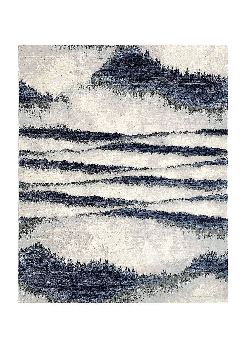 A serene, textured rug that captures the essence of a beautiful alpine landscape