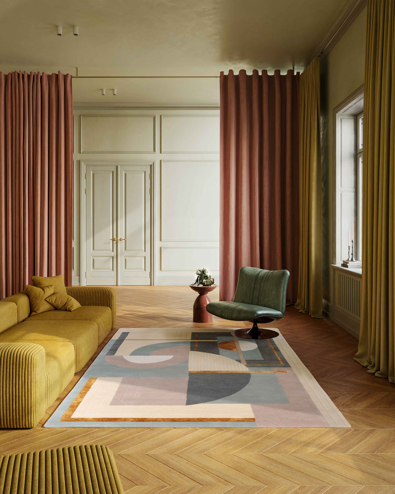 This rug is part of a four piece collection designed by Glasgow School of Art graduate, Catherine MacGruer. Catherine MacGruer x FLOOR_STORY is a wonderful testament to the designer’s ability to compose beautiful works that balance bold shapes and colour in works inspired by the Berlin metro and Bauhaus movement. Drawn to the shapes and colours of the city’s metro stations, Catherine has created abstract, modern designs that record angular architecture and strong geometric forms. Each one is beautifully handcrafted by FLOOR_STORY.