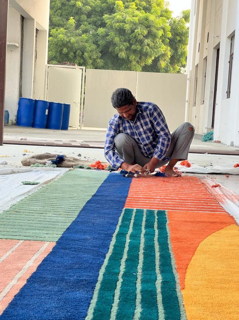 The Rigg & Furrow range designed by Gill Thorpe, includes a series of runners that features bold geometrical patterns which pop out due to the alternating pile heights which are available in a series of colour palettes.