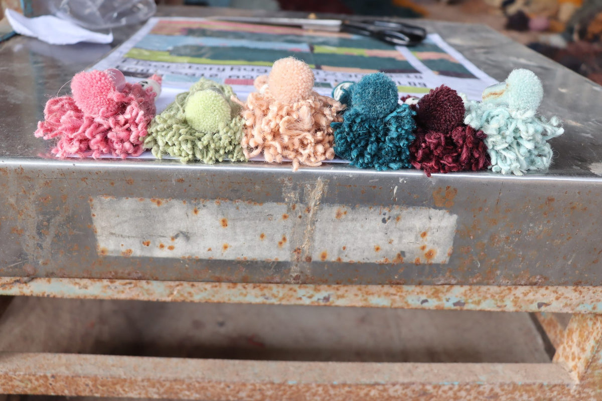 The use of Ghanzi wool provides a textural effect as the dye is only absorbed by parts of the curled wool, creating an overall texture similar to abrash textiles. This graininess is perfect for illustrating the nature of the East London landscape, adding character and depth.