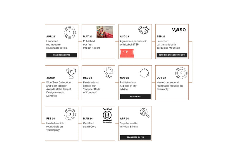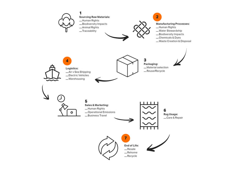 We wanted to visualise where these three key topics impact our business most throughout the value chain, so that we could set our goals and plan our actions. So we’ve mapped out the journey of a FLOOR_STORY rug, and the sustainability considerations at each stage, from beginning to end. Our material topics are relevant at every single stage - which is both hugely challenging and exciting.